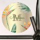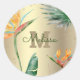 Tropical Palm Modern Monogram Script Gold Foil Classic Round Sticker