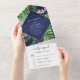Tropical Palm Navy Blue Rose Gold Wedding RSVP All In One Invitation