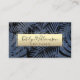 Present your best self to your clients, with Hawaiian tropical flair, whenever you use these chic, striking, stylish, modern, custom name business cards. Crisp, black handwritten script typography on a faux gold foil rectangle overlays a graphic, elegant, tropical palm leaf pattern of dusty steel navy blue gradations on black. Personalise with your full name and business on the front. Fill in the faux gold foil back side with your phone numbers, address, email, website, and social media accounts. Makes a chic, professional, and stylish statement wherever you go.