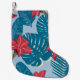 Tropical Palm seamless leaf blue pattern Small Christmas Stocking