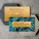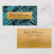 Present your best self to your clients, with Hawaiian tropical flair, whenever you use these chic, striking, stylish, modern, custom name business cards. Crisp, black handwritten script typography on a faux gold foil rectangle overlays a graphic, elegant, tropical palm leaf pattern of dusty teal blue gradations on black. Personalise with your full name and business on the front. Fill in the faux gold foil back side with your phone numbers, address, email, website, and social media accounts. Makes a chic, professional, and stylish statement wherever you go.