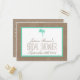 The design features a lovely rustic burlap effect background with cute mint green palm trees.