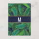 Elegant, chic, and modern tropical beach faux printed gold triple borders and green palm tree frond and banana leaves on navy blue with faux printed gold foil typography summer, Wedding information details card. This classic and sophisticated design is perfect for the classy, stylish, and trendy graduate. Personalise with your own message on the front and a customised monogram initial on the back. All photo print design.