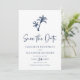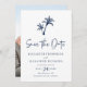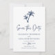 Tropical Palm Tree Navy Blue Beach Wedding Save The Date
