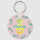 Tropical Palm Tree Pineapple Pink Name Keychain