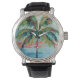 An abstract version of palm tree in dark green, blue and red strokes. Artist : Silvia Vassileva