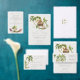 This wedding envelope is a tropical jungle design with the colours of nature. It features palm trees, luscious rainforests, and bungalows nestled within a beautiful tropical paradise setting.