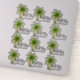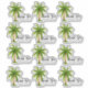 Wedding thank you themed sticker set sheet with 12 separate graphics of palm trees, with black text reading Thank You. Personalise with the bride and groom's names. Great for use on your tropical or beach theme wedding favours.