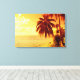 Canvas landscape print of palm trees at a beach on a tropical island in the pacific ocean at sunset.