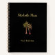 Elegant gold and black tropical Beach Notebook, with a palm trees design and customisable lettering. A simple and modern addition to your home office or small business.