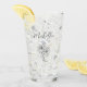 Tropical foliage personalised drinking glass, with a palm tree drawing and elegant script customisable lettering. Great for adding a botanical beach theme to your beverages.