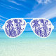 Tropical palm trees in a blue and white graphic effect. Summer holidays sunglasses with a tropical style design.