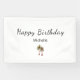 Elegant birthday party banner, with a palm trees illustration design with customisable lettering. A great way to add a tropical touch to that beach inspired celebration.