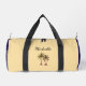Tropical beach palm trees duffel bag, with an elegant customisable script design with a yellow background. Great for adding a botanical touch to your style while you are on the go!