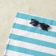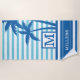 Tropical Palm Trees Monogram Name Aqua Blue Stripe Beach Towel