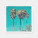 Paper napkins with a beautiful photograph. Tall palm trees with long skinny trunks in front of a lovely green sky. Retro colour scheme. Relaxing and chill.