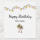 Tropical Beach Birthday wine, with an elegant palm trees string lights design on a white background. With customisable typography lettering, you add your own information. A fun addition to your beach beverages.