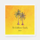 Tropical Bright Gold summer swim party paper napkin, with a palm trees illustration design and black customisable lettering. Great for planning your picnic pool party with a beach theme.