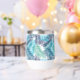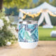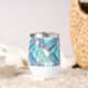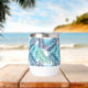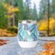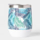 This stylish thermal wine tumbler will keep your drinks cold in the summer and hot in the winter, shown in a multi blue tones tropical palms print.