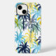 This iPhone 14 case is shown in a lovely multi colour palms art print.