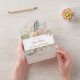 We absolutely loved how these wedding invitations turned out! We went with the standard paper stock, and it is plenty thick. One thing we probably would have changed is not doing the big white block on the front for the recipient address. Our invitations are a dark green. When we went to Staples to look at the options for labels, we saw some cute kraft stock colored ones that would have looked really cute on the dark green rather than using matte clear labels within the white block if that makes sense. They are still adorable though. I just fancied up my matte labels with a little leafy design and pretty font for the names so I feel like it helped it look more cohesive. Also, if you’re worried that they look pricey, make sure to put your quantity in because the price goes down significantly. We found this to be a super affordable, efficient and unique option that checked all of our boxes. When folded, they are the size of a little Google home screen see pictures. Perfect! Colors look exactly as we expected and the printing quality is clear and consistent.