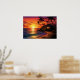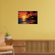 Vibrant colourful dramatic sunset paradise over the ocean with palm trees and a tiki hut. - Ai Generated Poster