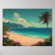 This postcard invites you to the pristine shores of a tropical paradise, where the azure waters kiss golden sands, and the palm trees sway gently in the balmy breeze. With lush mountains rising in the distance and vibrant flowers framing the view, this idyllic beach scene is the perfect escape to serenity. Whether it's to entice a loved one to join you on an adventure or to send a slice of heaven to someone special, this postcard promises a retreat to nature's most enchanting hideaway.