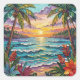 Tropical Paradise | Coastal Beach Scene Impasto Square Sticker