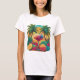 This vibrant t-shirt design captures the essence of a tropical getaway. At its centre is a colourful cocktail in a stylish glass, blending rich hues of blue, purple, and pink, topped with ice and garnished with a lime slice. Surrounding the drink are lush tropical elements: palm trees swaying against a warm sunset, exotic flowers in vivid reds and pinks, and juicy citrus fruits adding a zesty vibe. The art radiates summer energy, making it perfect for beach lovers or anyone dreaming of an island escape!