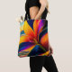 Colourful tote bags features bold and bright tropical floral and beach sunset | AI created surreal fantasy digital art.