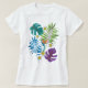 Colourful tropical leaves of palm trees, monstera, plumeria flowers and birds of paradise.