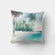 Tropical Paradise with Sandy Beach and Palm Trees Cushion