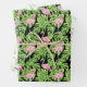 A Unique Wrapping Paper Set Of Tropical Flowers And Pink Flamingos