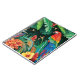 Tropical paradise with leaves, flowers, and a parrot. Vibrant and lively summer illustration.