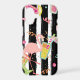 Watch out! The pink flamingo is checking out your tropical drink on this cute phone case! Party images, including a variety of tropical drinks and confetti dance across a background of black and white stripes, while the flamingo takes centre stage. Colourful, unique, and definitely a conversation piece! Thanks to www.ephrazydesign.etsy.com for some of the graphics used in this design.