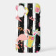 Watch out! The pink flamingo is checking out your tropical drink on this cute phone case! Party images, including a variety of tropical drinks and confetti dance across a background of black and white stripes, while the flamingo takes center stage. Colorful, unique, and definitely a conversation piece! Thanks to www.ephrazydesign.etsy.com for some of the graphics used in this design.