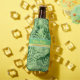 A pattern of green palm leaves, with custom label (name and special date)... cool for a beach-house decor, gifting someone or for tropical parties