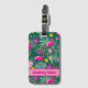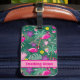 Super funny tropical pickleball party with pink flamingos, drinks and tropical foliage. Luggage tag with custom text