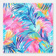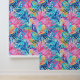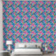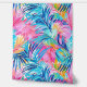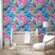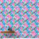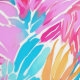 A seamless pattern featuring pink and blue palm tree leaves with yellow and minty green small accents. The design has a hand-painted look, combining soft and vibrant colours to create a fresh and whimsical tropical aesthetic.