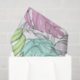 A pretty pastel, watercolor look palm leaf print. In colours of aqua blue, coral pink and lemon yellow on a white background. Light, airy and elegant.