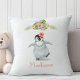 Tropical pastel pink floral baby penguin nursery cushion