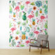 Tropical Pattern Pink Flamingos & Flowers Tapestry