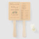 Displayed here is a tropical peach and teal wedding program hand fan that is creatively designed. Crafted using sturdy card stock, this design features a peach background with text in brown font. Easy to navigate templates makes customisation a breeze.