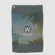 Personalised golf towel featuring a classic tropical design. Customise the golf towel with your name and desired monogram. Tropical trees with sky view. Use the template to create your own personalised golf towel.