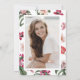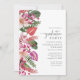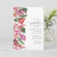 Tropical Photo Graduation Invitation. Invite your loved ones to a tropical-inspired graduation celebration with this stylish and vibrant party invitation, perfect for high school seniors and college graduates. Featuring a lush side bouquet of watercolor palm leaves, monstera leaves, and vivid magenta, pink, and red orchids, ferns, and other tropical florals, this design brings a fresh and lively feel—ideal for spring and summer celebrations. Elegant grey script adds a refined touch, while the back of the invitation features a coordinating pattern and a space for a single cherished photo, making it both personal and memorable. Whether you’re hosting a casual outdoor gathering or a sophisticated soirée, this invitation sets the perfect tone for an unforgettable graduation party.