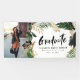 Painted tropical photo graduation party decor banner. Hand painted script text.