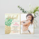 Tropical Birthday Invitation Card with Personalised Photo, Gold Glitter Frame, String Lights and Gold Tropical Pineapple
