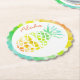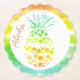 Tropical summer theme pulp board paper coasters, with graphics of a colourful pineapple, against a white circle on a colourful striped background. Coral text reads Aloha and can be personalised to read anything you want. Great for special occasions and every day use.