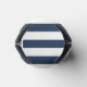 Commemorate your wedding in island preppy style with these wedding favour can coolers, featuring a green and golden yellow pineapple illustration with the couple's names, wedding date and location in navy blue. A navy and white striped background finishes this design, perfect for Hawaii, Newport, island or southern weddings where the pineapple reigns supreme!
