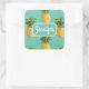 Tropical Pineapples On Teal | Add Your Name Square Sticker